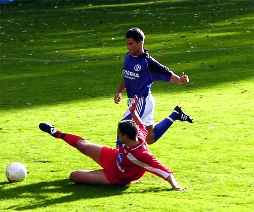 Spiel, der stramm geschossene Ball verfehlte jedoch das Schalker Gehäuse