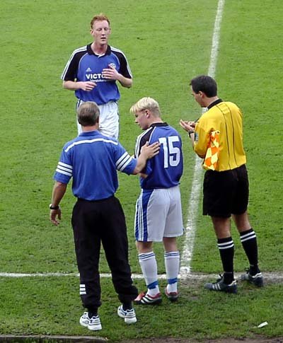 uns der Schiri eine Einwechslung, welche dann erst in der Nachspielzeit