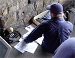 Kampfbahn der Arbeitsplatz eines Radio-Live-Reporters aus |