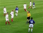 einen strammen Schuß in Oestrichs Strafraum, der abprallte und Hajnal
