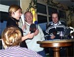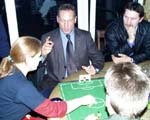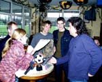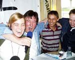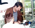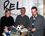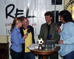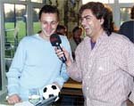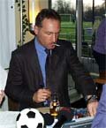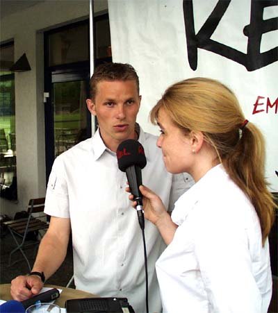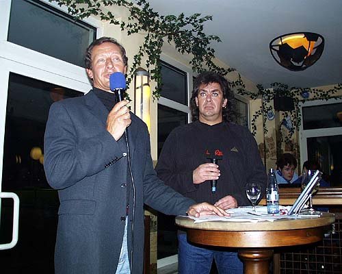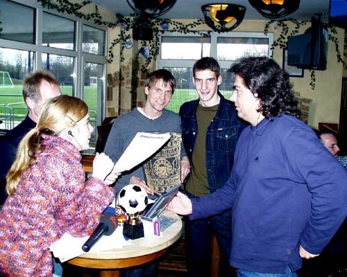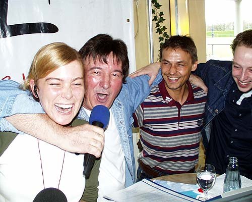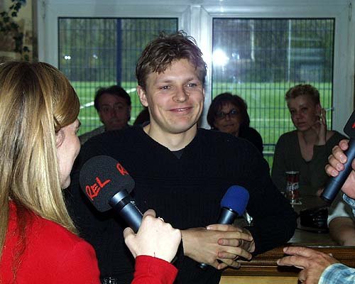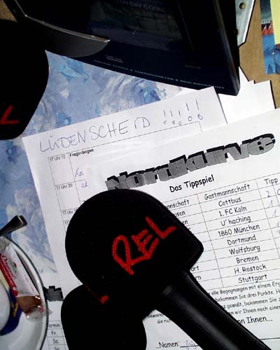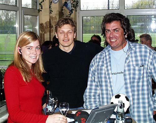 zuerst hatte man heute geplant, die Nordkurve „open air“ zu veranstalten, weil es aber doch irgendwie noch zu kalt und windig war, zog man kurzfristig wieder in den Innenraum des Schalkers um. Hier wartete dann alles auf Youri Mulder, der vorher noch mit der Mannschaft um den im Moment trockengelegten Berger See laufen musste. Da der gute Mann leider nicht pünktlich war, musste mal wieder improvisiert werden. Inga stellte zuerst die Hörerfrage, die Leute an den Radios sollten ihre Meinung dazu äußern, ob Youri den richtigen Durchbruch noch mal schafft. Dann wurde das Ergebnis des Ratespiels von letzter Woche bekannt gegeben und der neue Einspieler gesendet. Das ist natürlich auch wieder auf www.relmeinradio.de nachzulesen und zu hören. Die Fragen sind wirklich knifflig, so ganz einfach ist das nicht. Um kurz vor halb sechs war Youri dann endlich da und wurde lautstark vom reichlich anwesenden Publikum begrüßt. Natürlich durfte er gleich fleißig den Edding schwingen, Mulder ist halt immer noch ein „Kultspieler“ auf Schalke. Es war barbarisch voll im Lokal, wir freuen uns wirklich auf den Sommer, wenn man wieder draußen sitzen kann. Nach der Nachrichtenpause gab es den üblichen Fragebogen. Youri meinte, dass ihn von Ebbe Sand dieses Jahr ne Menge unterscheidet, nicht nur 6 Jahre und ein paar Millionen. Wenn er kein Fußballer geworden wäre, hätte er wohl als Schiedsrichter gearbeitet. Inga sprach sein angefangenes Jurastudium an, worauf die Antwort kam: „Ja, ja, deswegen ja SchiedsRICHTER“. Youri würde auf Schalke im Moment nichts ändern, höchstens, dass er dann mehr spielen würde. Das Pokalspiel wird er wohl auf der Bank miterleben, was er genau machen wird, weiß er nicht, er hat noch kein Endspiel mitgemacht. Auf sein Hobby angesprochen meinte er, dass er jedenfalls kein Golf spielt, weil er das lächerlich findet, einen blöden Ball in ein kleines Loch zu schlagen. Das Gelächter im Saal war ihm sicher, vor allem, weil er dann feststellte, dass Fußball eigentlich genauso dämlich ist, ein größerer Ball muss in einen eckigen Kasten....... :o) Ein Zuhörer meinte, dass Youri im Moment nur der dritte Mann hinter Sand und Mpenza ist. Mulder selber meint, dass er es sicher schwer hatte nach seiner Verletzung, aber er will in der nächsten Saison wieder angreifen. Es war ja eigentlich erst seine erste richtige Saison nach der langen Pause. Normalerweise ist es ja eher bitter, wenn man auf der Bank Platz nehmen muss, aber Youri freut sich draußen genauso mit wie alle anderen auch. Er fand die Stimmung beim Spiel gegen Hertha klasse und war froh, dass er noch ein paar Minuten mitspielen durfte. Inga sprach das Spiel noch mal konkret an, Mulder meinte auch, dass die erste Halbzeit nicht so gut war, aber ein Tor zurück ist im Fußball eigentlich nicht so schlimm. Youri war als Ersatzspieler in der Pause nicht in der Kabine und konnte so Dirks Frage nach der „Ansprache“ des Trainers nicht beantworten. Warum Youri dabei so ein leichtes Grinsen auf den Lippen hatte, wird wohl sein ewiges Geheimnis bleiben, auch wenn er meinte, dass er keine hätte....... Ein weiterer Zuhörer meinte, dass Youri gut daran täte, sich einen neuen Verein zu suchen, weil er ja wohl keine Chance mehr hätte, gegen die drei anderen Stürmer. Es wäre ja wohl nicht Sinn der Sache im Jahr 30 Minuten Fußball zu spielen und nur Geld zu kassieren. Youri meinte, dass er sofort den Verein wechseln würde, wenn er das Gefühl hätte, nicht mehr gebraucht zu werden. Das ist aber nicht der Fall, es ist gut, noch einen Mann in petto zu haben, falls jemand plötzlich ausfällt, stellte ein anderer Anrufer fest. Wie schnell das gehen kann hat man ja gesehen, als damals Martin Max und auch Youri im selben Spiel schwer verletzt wurden und man ohne echten Stürmer weitermachen musste. Dirk sprach dann den Erfolg dieser Saison an, den Youri einfach darauf zurückführt, dass man guten Fußball spielt und die Spiele auch gewinnt. Mulder leidet keines Falls darunter, dass er zur Zeit nicht spielt und so ja eigentlich nicht unbedingt dazu beiträgt. Youri hätte diese Entwicklung auch nicht vorhergesagt, es ist für ihn auch unglaublich. Es ist für den Gast absolut verständlich, dass man offiziell nicht über das Double spricht, es kann auch in den letzten vier Spielen noch einiges passieren, was man ja im letzen Jahr bei Leverkusen erlebt hat. Es gab dann Fragen aus dem Publikum, wobei „zu Tage kam“, dass Youri nicht vor hat , irgendwas besonderes zu machen, wenn tatsächlich ein Titel geholt werden sollte. Auf die Frage, ob er nicht sein Haar blau-weiss einfärben wolle, meinte er nur, dass sie mit Sicherheit nicht schwarz-gelb werden würden. Er hat beim Warmlaufen am Samstag Abend durchaus mitbekommen, dass das Publikum sehr emotional war, so einige hatten ja nach dem 3:1 „datt Pipi inne Augen“. Sein erstes Spiel für Schalke war auch im Ruhrstadion gegen Wattenscheid, man hat damals gleich verloren. Schon in diesem Spiel hat er gemerkt, dass Schalke etwas ganz besonderes ist. Dirk meinte dann, dass Youri ja noch was vorhabe und wegmüsse. Davon schien der Gast eher überrascht, nahm das Stichwort aber auf, sagte „Tschüss“ und entschwand. Man kennt ja Herrn Mulder schon länger, er ist halt ein eher trockener Typ. Zum Schluss ging man noch den Tippzettel von Youri durch. Wenn er richtig liegen würde, sähe es für Schalke schon besser aus, er tippt einen Sieg für Schalke und ein Unentschieden für die beiden direkten Verfolger. Möge er Recht behalten.............. BWG |